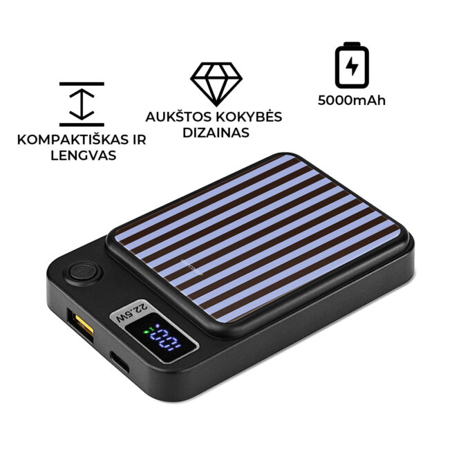 • MagSafe suderinamumas: veikia su „iPhone 12“ ir naujesniais modeliais bei „Android“ telefonais, turinčiais MagSafe dėklus arba palaikančiais belaidį įkrovimą.