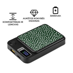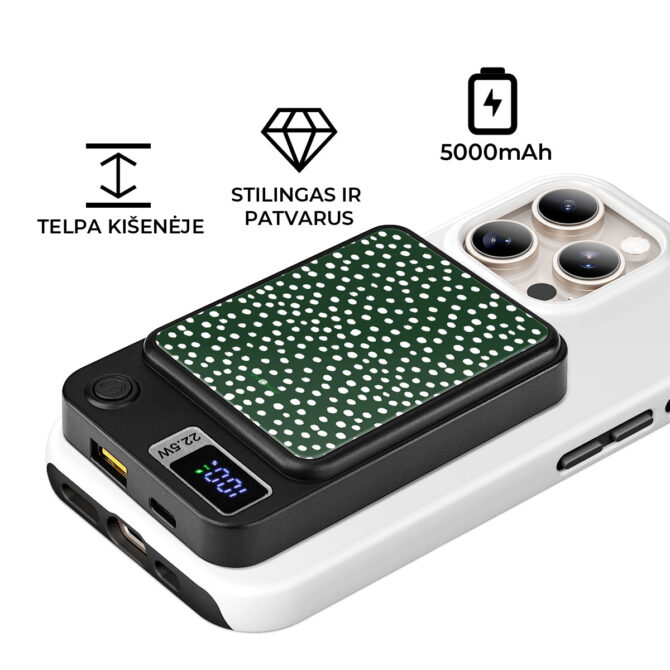 Dėl stipraus magnetinio ryšio jis tvirtai prisitvirtina prie MagSafe suderinamų „iPhone“ telefonų ar „Android“ modelių su MagSafe dėklais. Taip pat gali įkrauti laidu – dar greičiau ir patogiau. Lengvas, kompaktiškas ir sukurtas kasdieniam naudojimui – pakankamai mažas, kad visada turėtum su savimi, ir pakankamai galingas, kad išlaikytų tave įkrautą visą dieną.