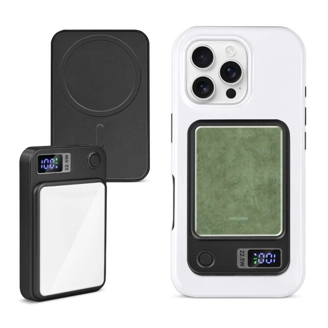Įkrauk telefoną bet kur su Hopcover Magnetic Power Bank – tobulu dizaino ir funkcionalumo deriniu. ⚠️ Pastaba: magnetinė funkcija veikia tik su MagSafe suderinamais telefonais (iPhone 12 ir naujesniais) arba Android telefonais, turinčiais MagSafe dėklus ar palaikančiais belaidį įkrovimą. Su 5000 mAh Li-Polymer baterija, greitu belaidžiu įkrovimu ir stilingu grūdinto stiklo paviršiumi, jis ne tik palaiko tavo telefono energiją, bet ir išsiskiria savo išvaizda.
