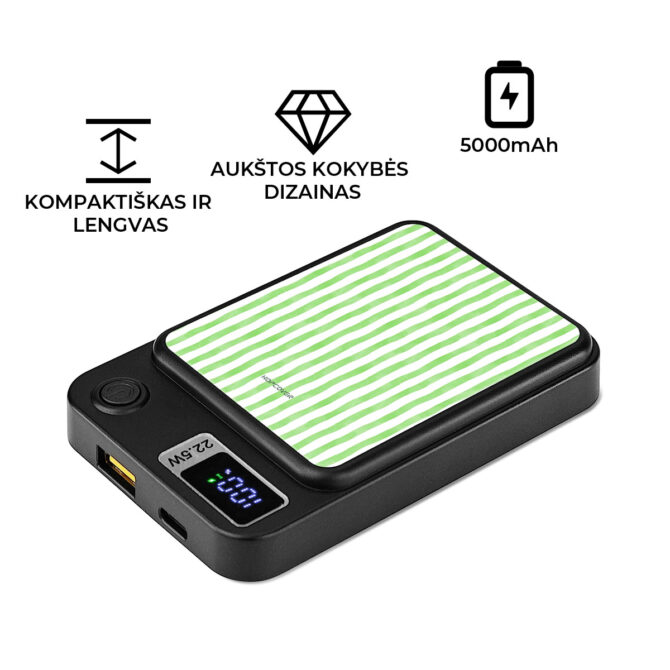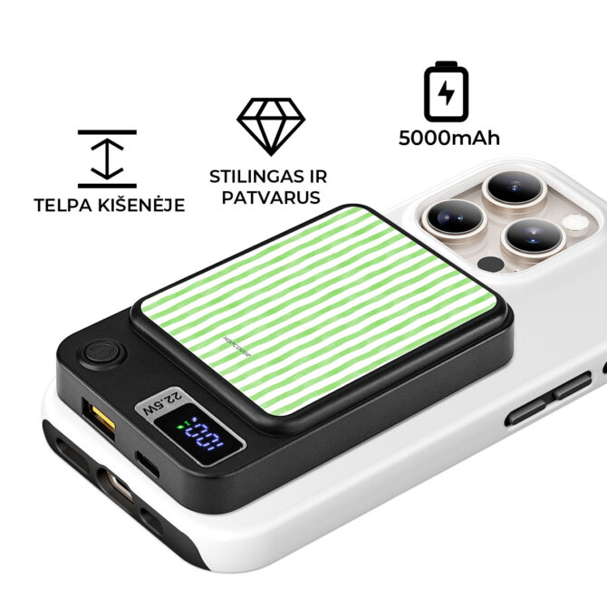 Dėl stipraus magnetinio ryšio jis tvirtai prisitvirtina prie MagSafe suderinamų „iPhone“ telefonų ar „Android“ modelių su MagSafe dėklais. Taip pat gali įkrauti laidu – dar greičiau ir patogiau. Lengvas, kompaktiškas ir sukurtas kasdieniam naudojimui – pakankamai mažas, kad visada turėtum su savimi, ir pakankamai galingas, kad išlaikytų tave įkrautą visą dieną.