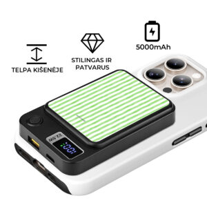 • MagSafe suderinamumas: veikia su „iPhone 12“ ir naujesniais modeliais bei „Android“ telefonais, turinčiais MagSafe dėklus arba palaikančiais belaidį įkrovimą.